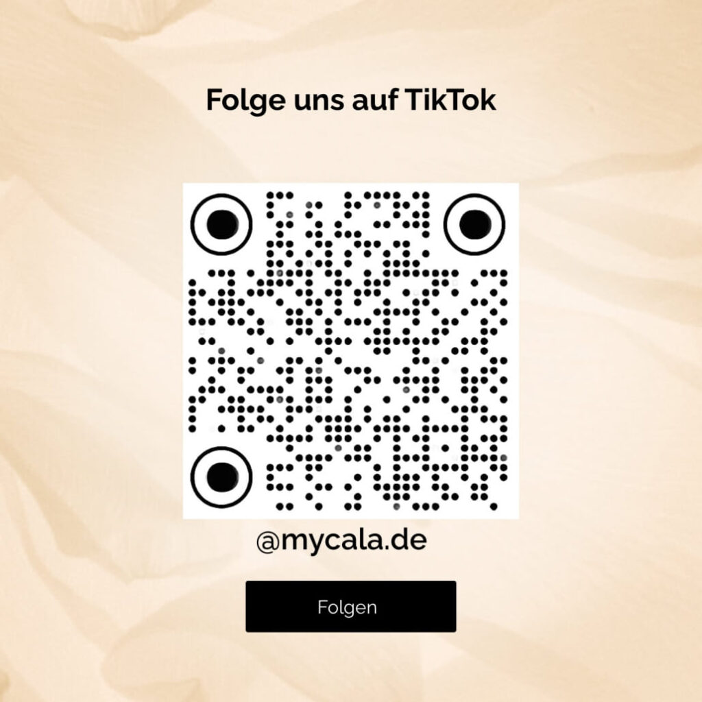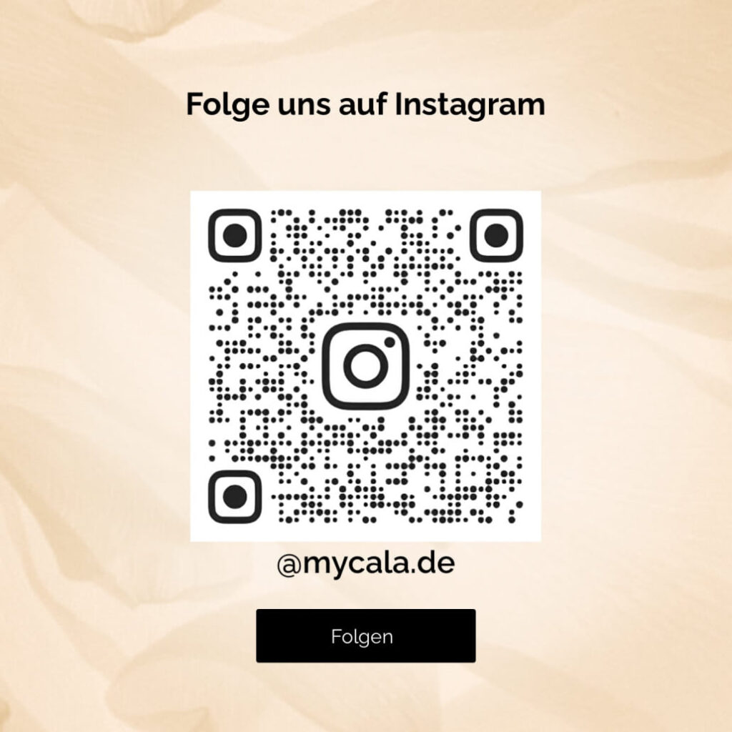 Du kannst uns auch per E-Mail an shop@mycala.de kontaktieren, um einen Termin für virtuelles Shopping zu vereinbaren oder uns auf folgenden Plattformen direkt finden: